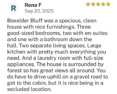 Whether you're planning a family vacation, attending a wedding or local event, hitting the trails on an ATV, snowmobile or motorcycle, or gathering with friends, Boxelder Bluff offers a cozy and flexible home base.