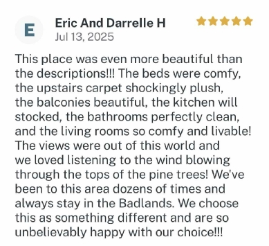 Great news—we have completed our septic system upgrade and can now accommodate up to 10 guests! In addition, starting in Spring 2026, we’ll also complete the walk-out lower level, transforming Boxelder Bluff into a spacious three-level retreat. The new lower level will feature two additional bedrooms, a bathroom, a family room, and a kitchenette, allowing us to welcome up to 14 guests. Stay tuned for these exciting updates, and book your Black Hills getaway today!